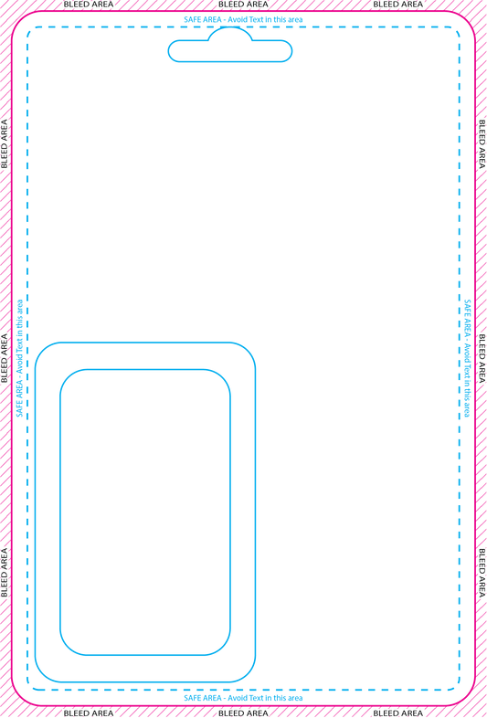 Browse our free downloadable templates to help you create your own card back designs like a pro. Simply use them as a overlay to make sure you have sufficient bleed (3mm) on all edges and have a good clear zone from the cut edges of the cards and any hole punches etc. An example of our blister bubble sizing is also included to help you make sure everything lines up and positions nicely.
